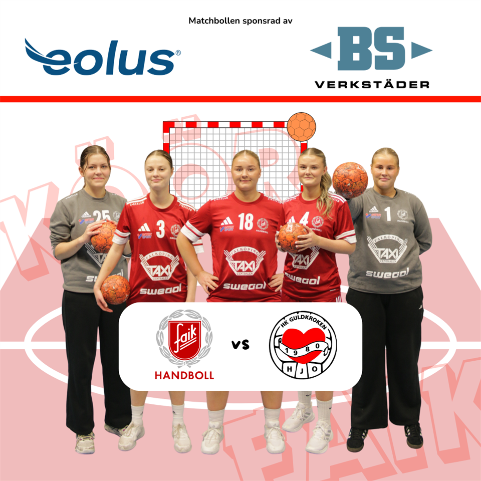 FAIK Damer tog ikväll emot HK Guldkroken Hjo på hemmaplan. Det blev en riktigt intensiv och spännande match där inget lag kunde förutse seger. Först i slutminuten lyckades FAIK hålla ett försprång på två mål hela vägen fram till slutsignalen! Resultat? Halvtid: 11–12? Slutresultat: 23–21 Ett stort tack till kvällens matchbollssponsorer www.eolus.com & www.bsverkstader.se Ett extra varmt tack till www.bowlingstallet.se för sponsringen av priset till Bollinkastet! Matchens lirare, utsedd av HK Guldkroken Hjo, blev Målvakt ? Smilla Croona! Målskyttarna i FAIK Damer är: Klara Roslund, 6 mål Ida fällström, 6 mål Alva Mäkinen, 4 mål Moa Erbing, 3 mål Elvira Olsson, 2 mål Alice Hasslekvist, 1 mål Ebba Linnarsson Jansson, 1 mål KÖÖR FAIK!