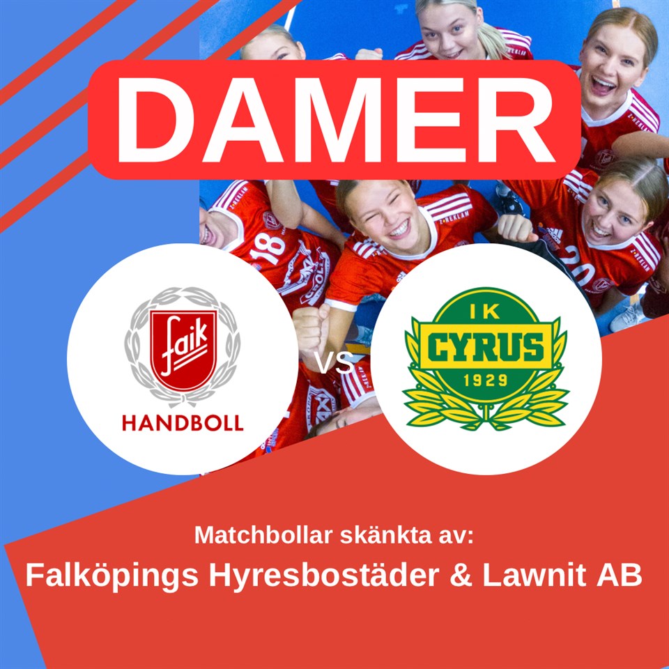 Falköpings AIK Damer vs IK Cyrus Söndag 29/10 Kl. 17:00 Odenhallen Matchbollar skänkta av: Falköpings Hyresbostäder & Lawnit AB Entré 50kr, Pensionärer 40kr. Välkomna! KÖÖR FAIK! Falköpings AIK Handboll 26 okt 2023 0kommentarer