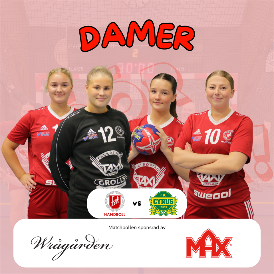 FAIK Damer vs IK Cyrus 17:00 23:e november Odenhallen www.faikhandboll.com Matchbollen sponsrad av Wrågården & MAX Burgers www.wragarden.se I www.max.se Entré 50kr - Vuxen 40kr - Pensionärer Falköpings AIK Handboll 21 nov 2025 0kommentarer